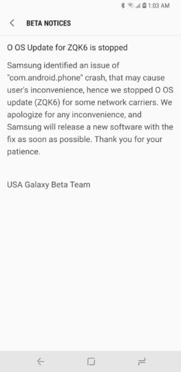 This issue affects Sprint, T-Mobile, and unlocked Galaxy S8s, with users complaining about the phone app repeatedly crashing after the update. Some of those users say clearing data for the phone app fixes the issue, but it crops right back after a restart. A factory reset isn't helping either, and that might be why Samsung isn't pushing out the update at this time. The company will hopefully find a solution quickly, but right now, there's no mention of when the update will start rolling out again.
