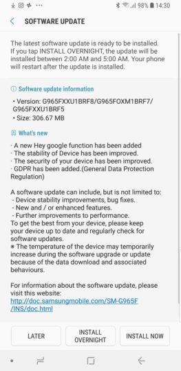 The latest Galaxy S9 update adds support for waking up Google Assistant by saying ‘Hey Google'. The Google app has responded to the ‘Ok Google' command since its inception, and the internet giant initially added ‘Hey Google' as a hotword to its Google Home smart speaker. Google then brought support for the new hotword to Android smartphones at the end of last year. Now, Galaxy S9 and Galaxy S9+ users can also wake up the Google app by saying ‘Hey Google' (and no, it won't actually be able to check for updates on your phone, despite what the heading says above).