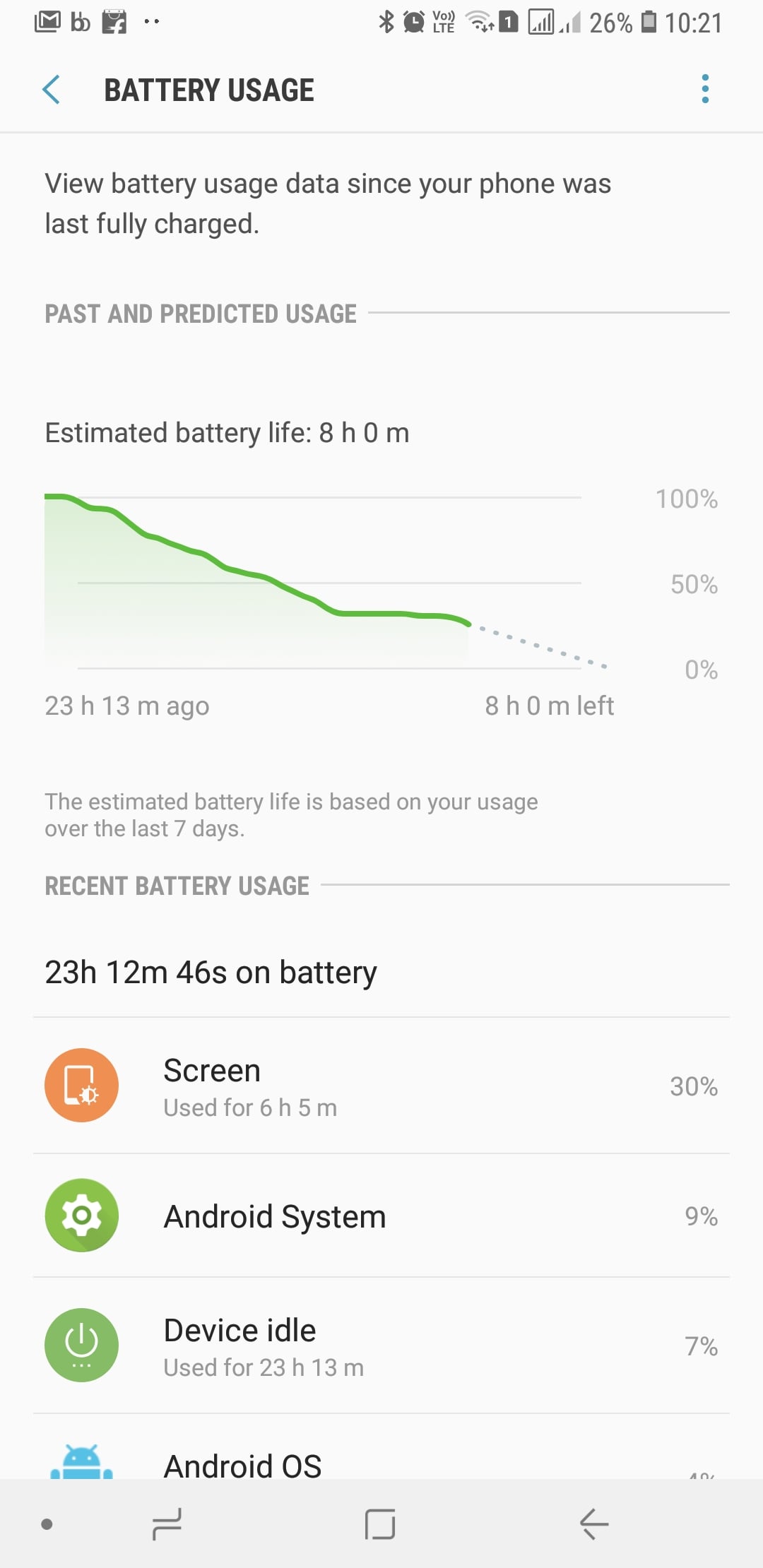 The Galaxy Note 9 has been getting all the praise it deserves for its 4,000 mAh battery, but Samsung's mid-range phones have traditionally been strong in this regard. On the Galaxy A8 Star, Samsung has put in a 3,700 mAh battery, which is bigger than the A8+' by 200 mAh. And endurance on this thing has been quite impressive since day one. The phone lasts long on both Wi-Fi and mobile data, with 7 to 8 hours of screen time easy to achieve while still having around 20 percent battery left the next day.