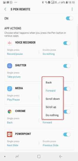 Step 1: Open the Settings app on your Note 9, tap Advanced features, then tap S Pen. Here, select the S Pen remote option to go into the S Pen remote customization menu.