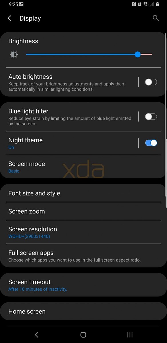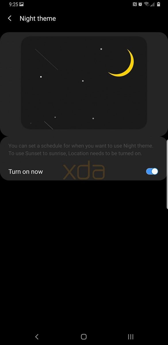 The latest Galaxy S9 Leaked Pie build has a working Night Theme toggle. Those who were irked by white cards on black backgrounds will be happy to see dark cards on black backgrounds. Once the toggle is enabled this theme would be applied to the entire Settings app and almost all stock Samsung apps.