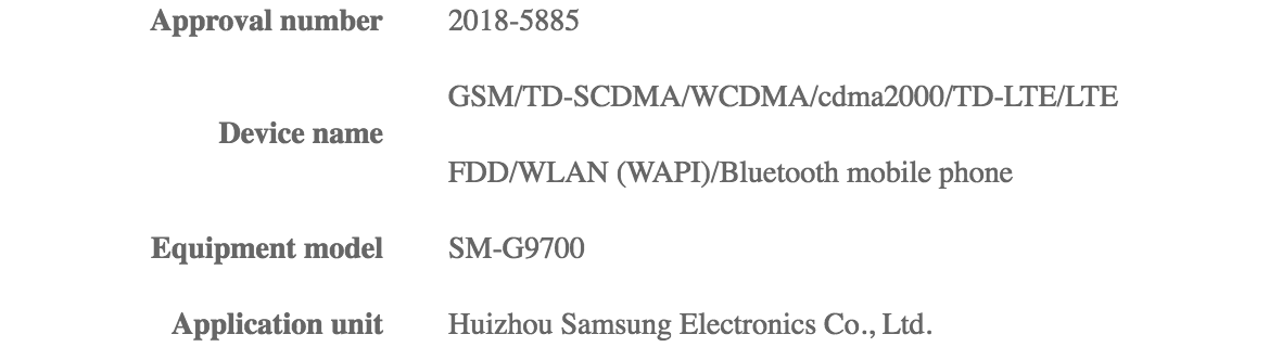 CMIIT has certified the three Galaxy S10 models bearing model numbers – SM-G9700, SM-G9730 and SM-G9750. The “0” at the end denotes that these models are intended for the Chinese market. The certification doesn't confirm much about the devices other than just reiterating their model numbers.