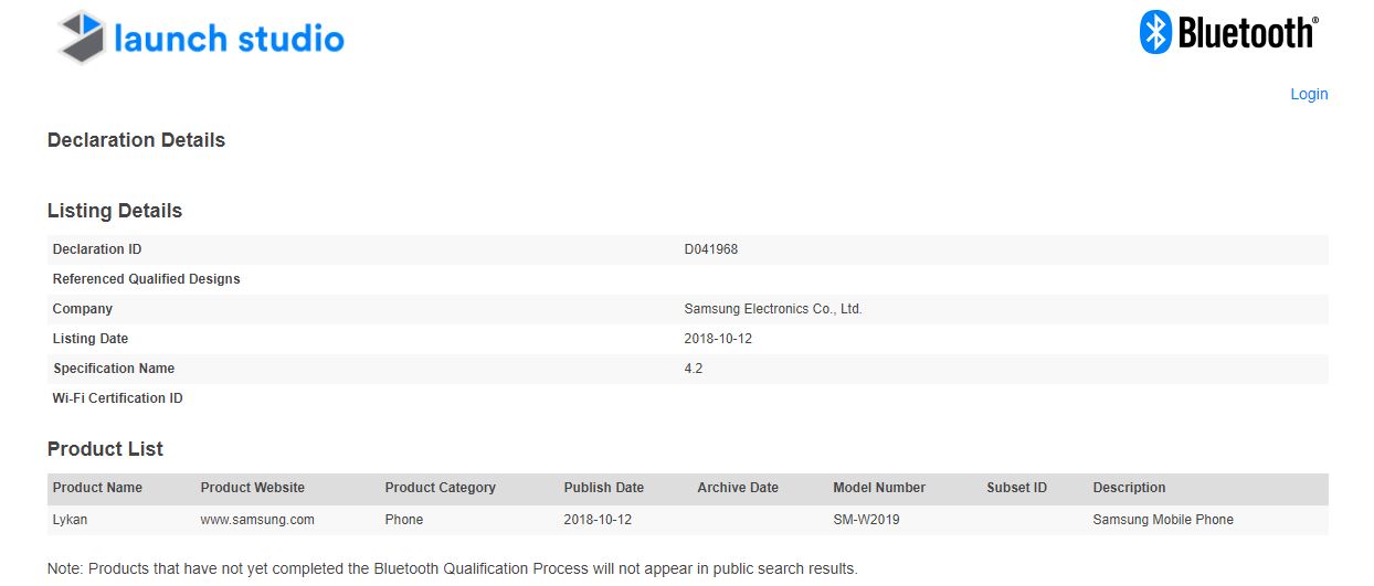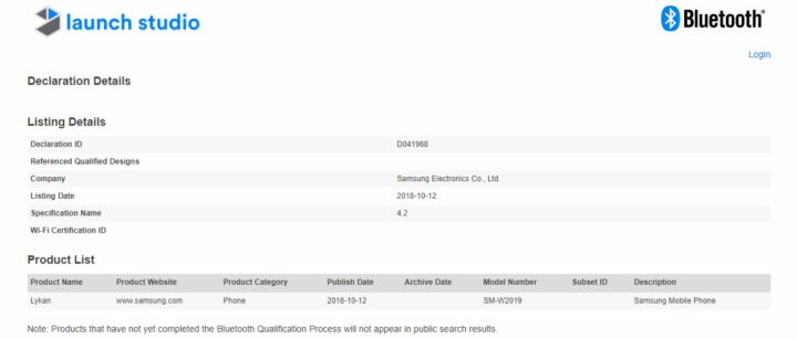The Samsung W2018 was launched in December last year, so we can expect a similar launch time frame for the Samsung SM-W2019. It may arrive earlier as well considering it has received many of the necessary certifications, but nothing is confirmed for now. Of course, you can rest assured it won't be available in most markets around the world. That's just how it is for exotic items such as Samsung's clamshell flagship phones.