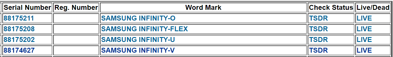 The company may be considering additional monikers along the same lines. It has registered several similar brands in the United States. They include Infinity-Flex, Infinity U and Infinity-O. Samsung has also registered Infinity-V in the US.