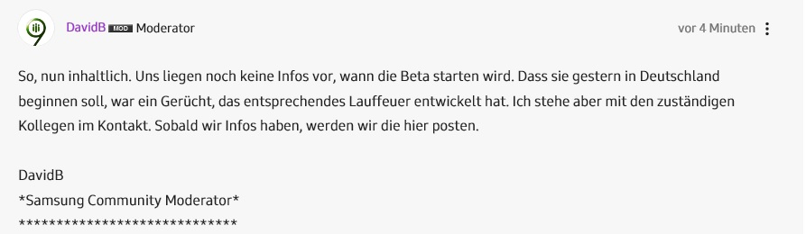 Germany, the only European market in the first phase, should have received the beta yesterday as well. There hasn't even been a peep about it from Samsung. Users who have been waiting for it are understandably expressing their frustration on the official forums in Germany. Discussions have reached a fever pitch with some members apparently being banned by moderators for using indecent language. Others contend that even those who used appropriate language to inquire about the beta were banned as well.
