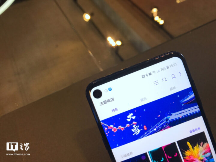 It may have looked quite small in the renders that surfaced so far but it's definitely noticeable. More so against light backgrounds which contrast against the black color of the camera lens. It should blend in nicely with the dark mode in One UI but this device actually ships with Android 8.1 Oreo, not Android 9 Pie.