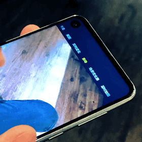 Samsung makes interesting use of the front camera cut out. You'd normally find a camera icon at the bottom right of the lock screen on a Samsung smartphone. Tap on it and swipe up to launch the camera without having to unlock the phone. You can do that on the Galaxy A8s as well but there's no button. Just swipe down dragging your finger over the front camera on the lock screen and the app will launch. An animated ring also illuminates the sensor when switching between the different camera modes.