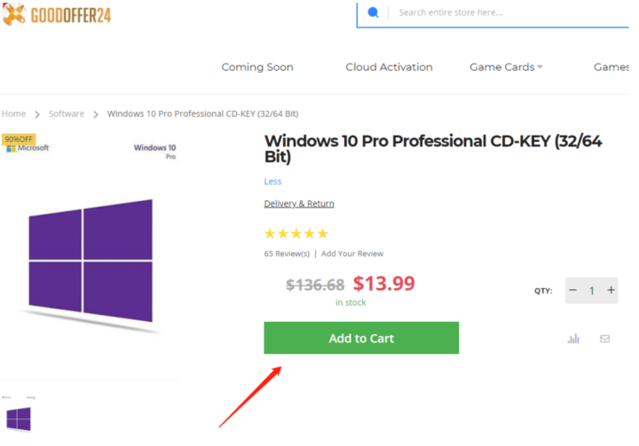 Shopping at Goodoffer24.com is as easy as it gets. Here's a brief explanation of how to buy the OEM version of Windows 10 Professional the discount code: TVLT18. Just click on the “Add to cart” button in the product description of the item.