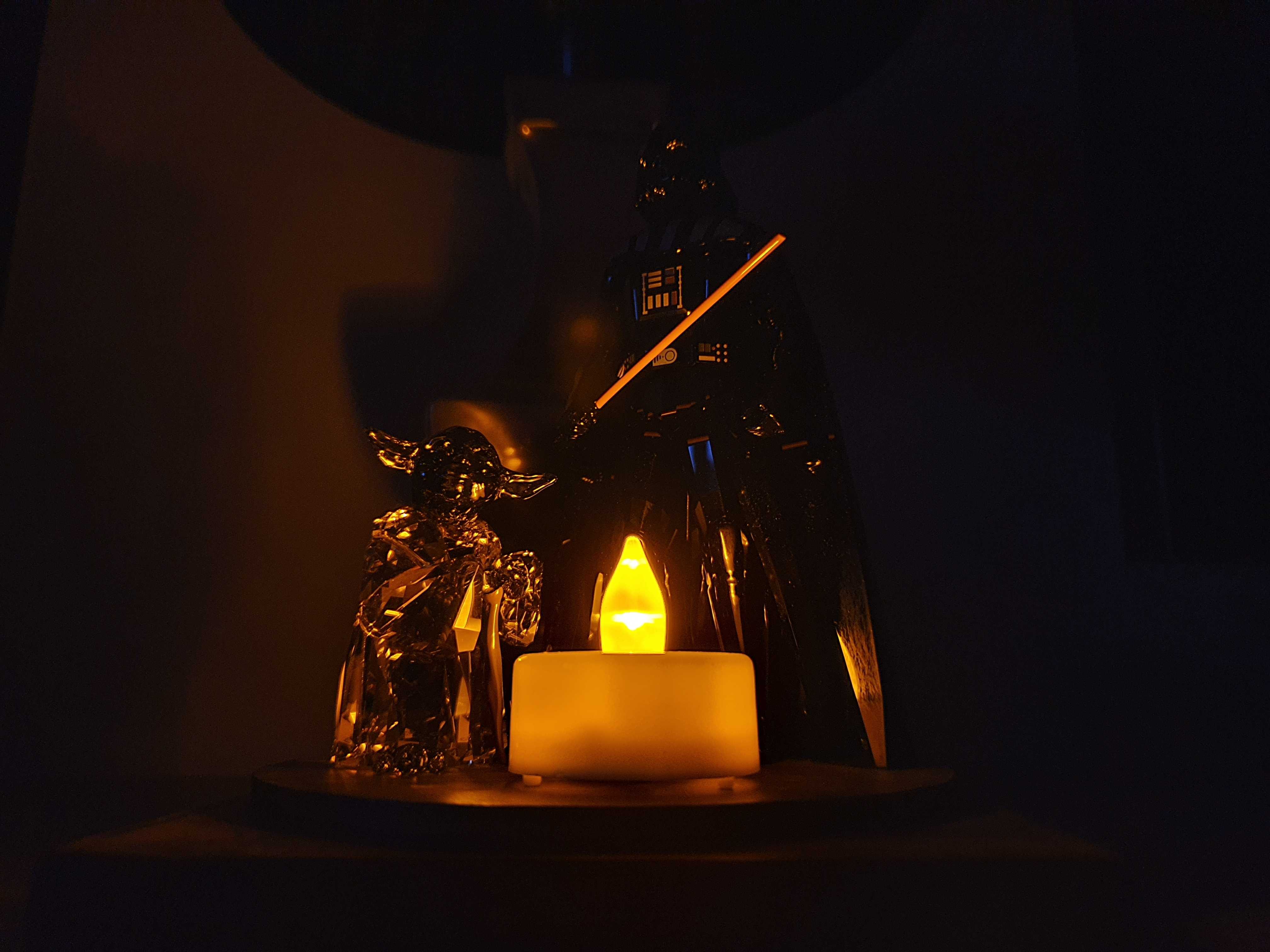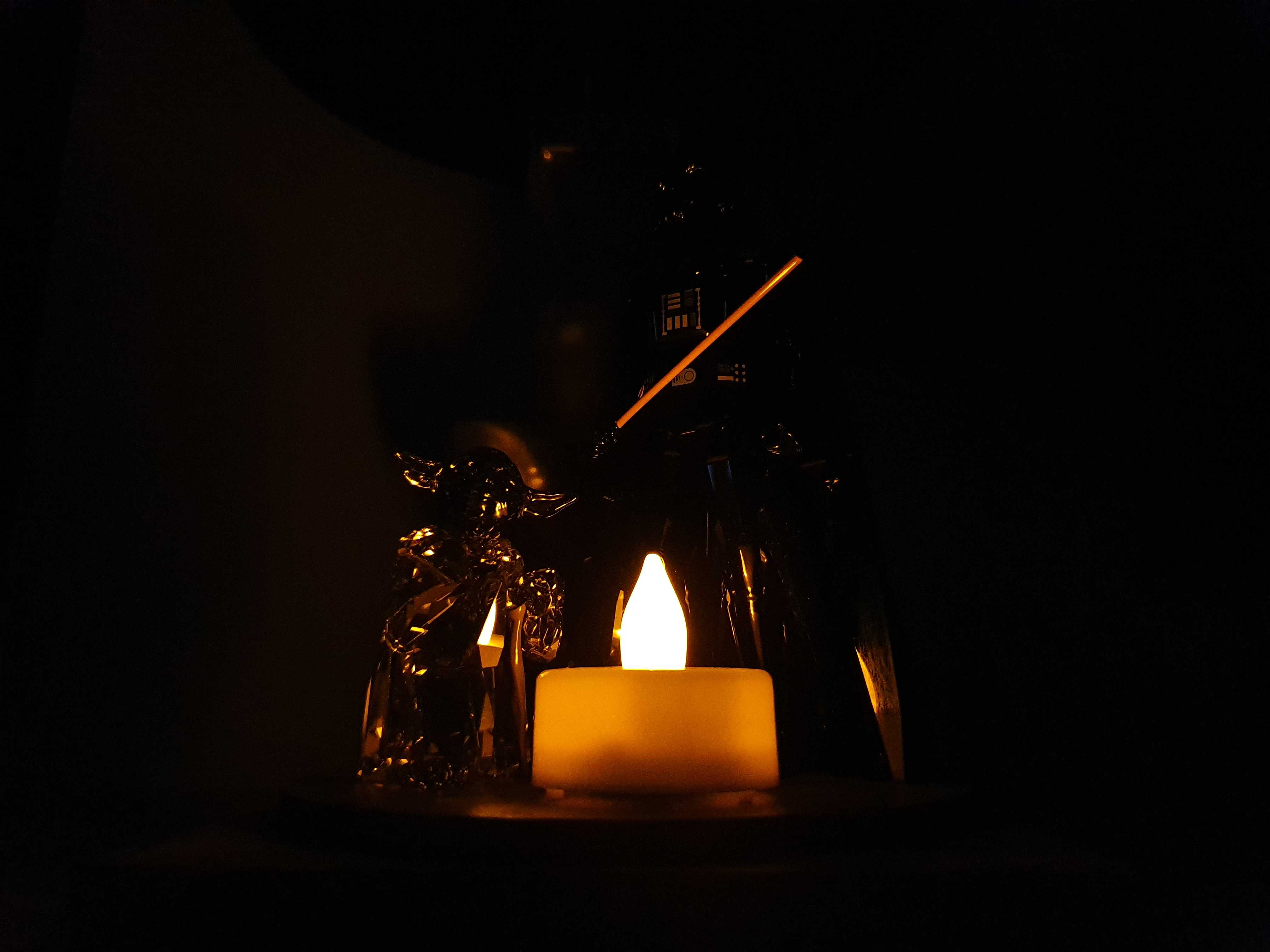 Below are two scenes captured with the ultra-wide camera in automatic mode (swipe right) and in Night mode (swipe left). The second one was taken in a completely dark room with only the small candle as the source of light.
