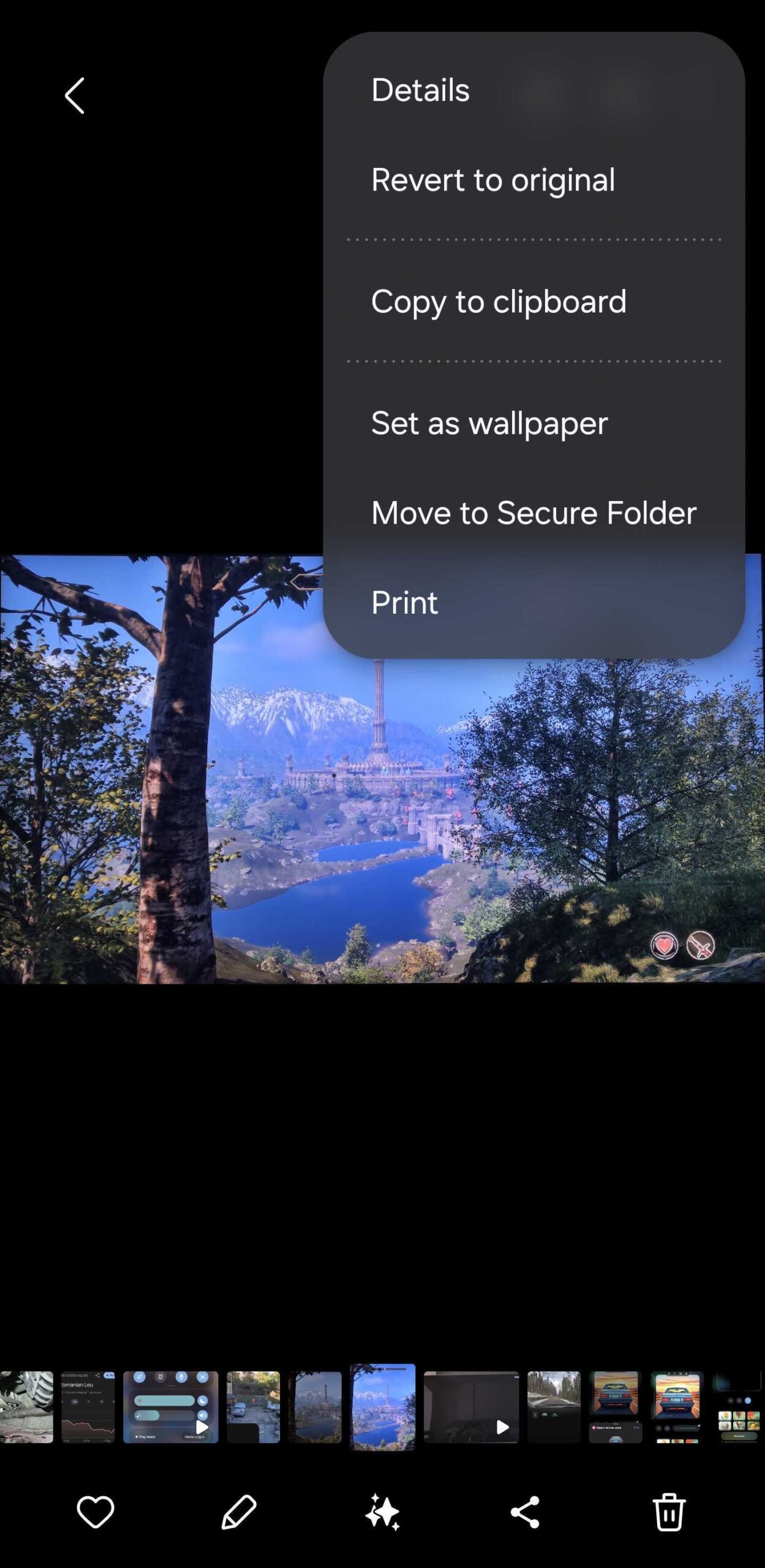 This menu also gives you access to the Gallery wallpaper option mentioned above, along with a few extra options you won't find in the Gallery app. These include: