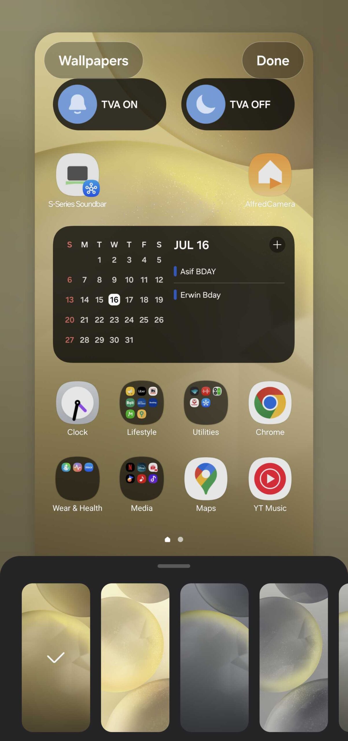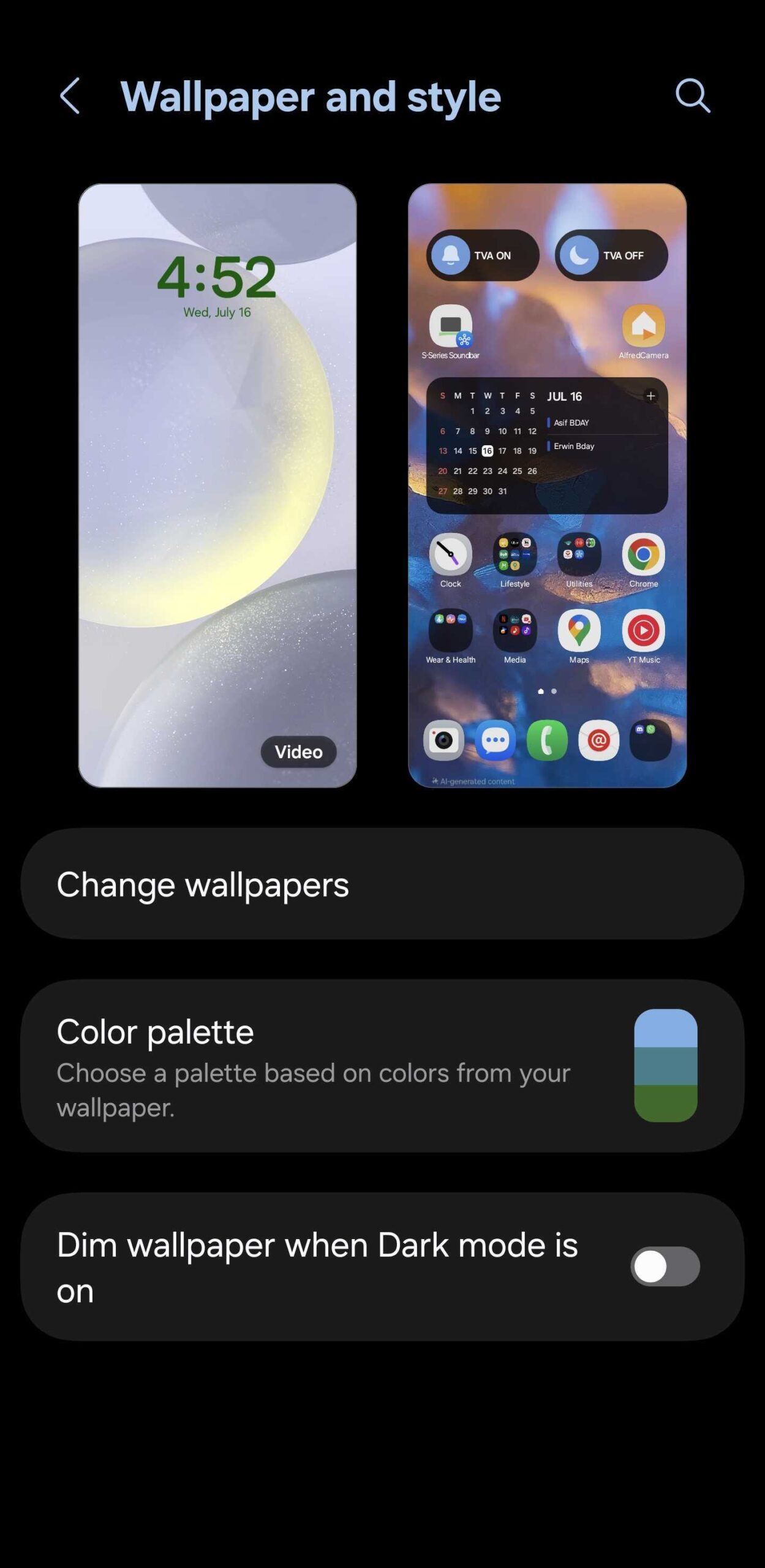 The option most Galaxy device users are familiar with is the dedicated Wallpaper and style menu, which can be accessed by pinching the home screen.
