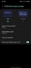 To enable Edge Lighting effects, first, open the Settings app on your Galaxy phone and access “Notifications.” Then, go to “notification pop-up style.” And finally, tap “Edge lighting style” to access the customization menu.