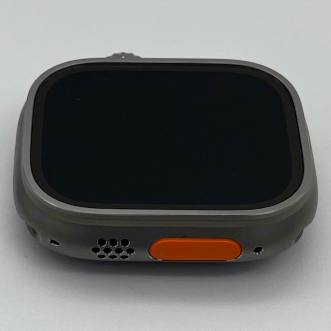 First, the action button of the smartwatch has a slightly different design compared to that of the Watch Ultra. It seems to be made out of plastic, which is the first thing suggesting that this is an affordable version of the Watch Ultra. Second, the back panel of the wearable is finished in black, which is different from the Watch Ultra models and similar to the Watch Series models, which is the second thing hinting that this is an affordable version of the Watch Ultra.