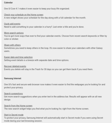 The Calendar has new options for quick events and sharing events with others, and Samsung Internet offers more search suggestions. And now, the browser also automatically starts in Secret Mode whenever the previous session ends in this mode.