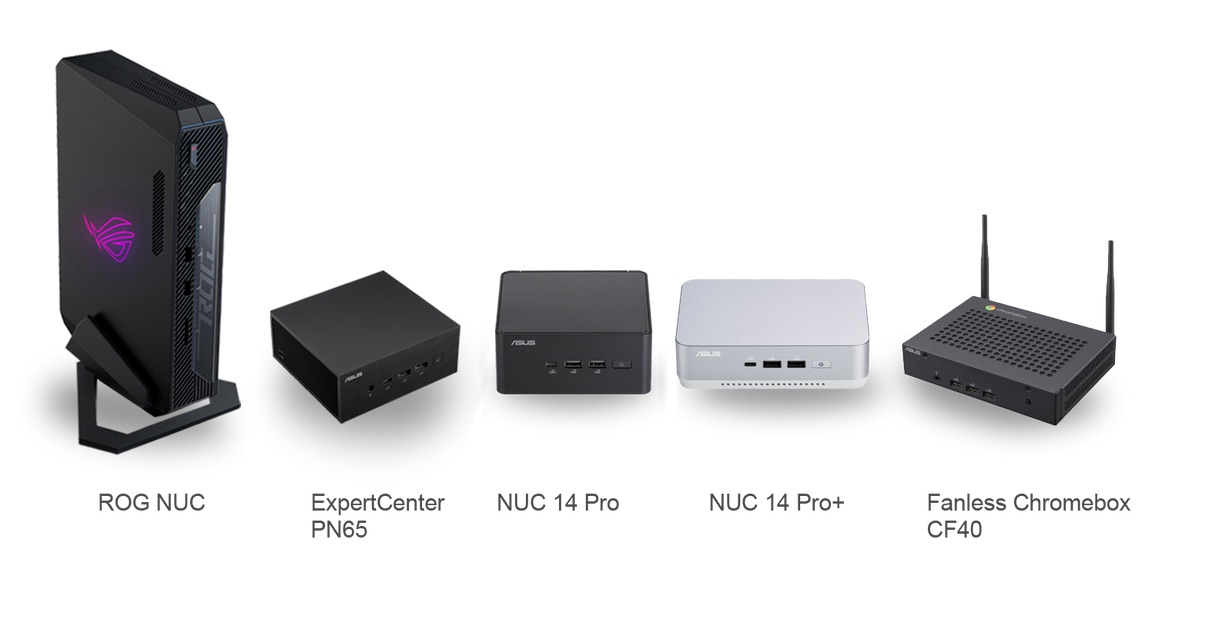 Asus has announced five new ultra-compact PCs at CES 2024: ROG NUC, NUC 14 Pro, NUC 14 Pro+, ExpertCenter PN65, and Fanless Chromebox CF40. In this article, we will focus on the NUC 14 Pro and the NUC 14 Pro+, which are the company’s mainstream mini PC models and successors to the NUC 13 Pro from last year.
