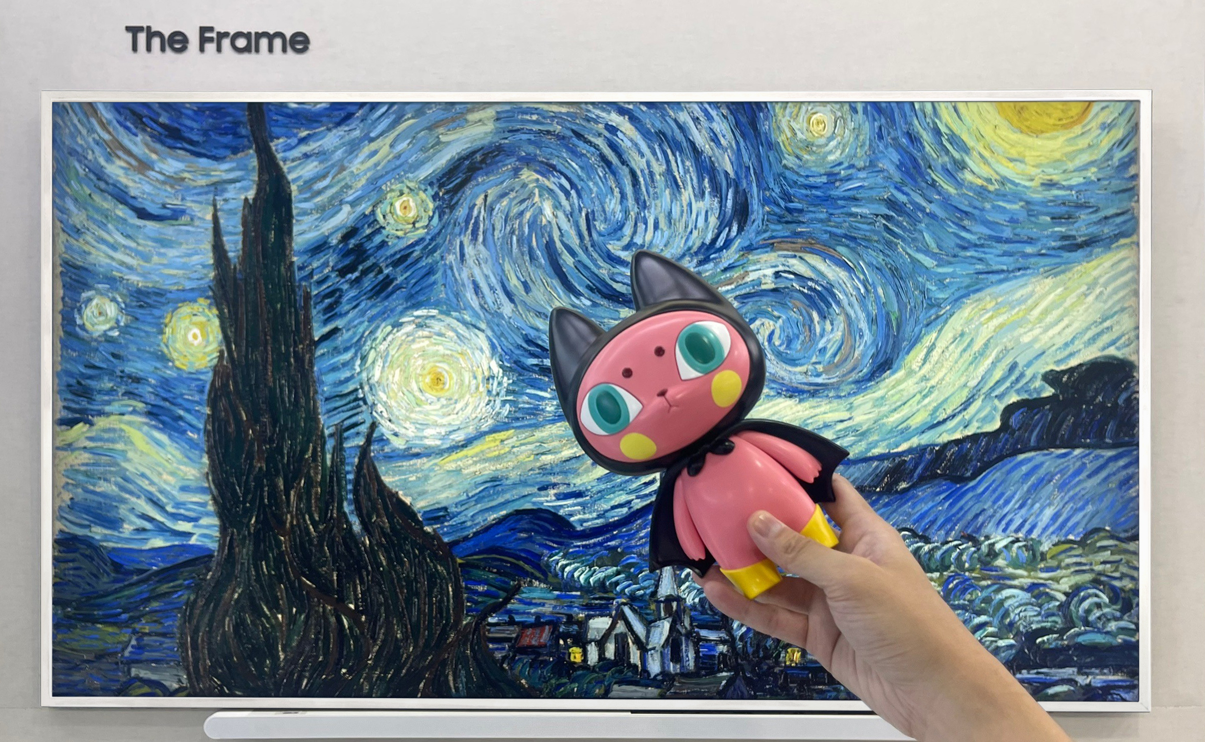 Samsung doesn't go into much detail as to how this mashup will work on The Frame. But driving the point home, the company shared the image you see atop this article, featuring Vincent van Gogh's The Starry Night on The Frame, partially covered by someone holding a figure of Bad Meaw in front of the TV.