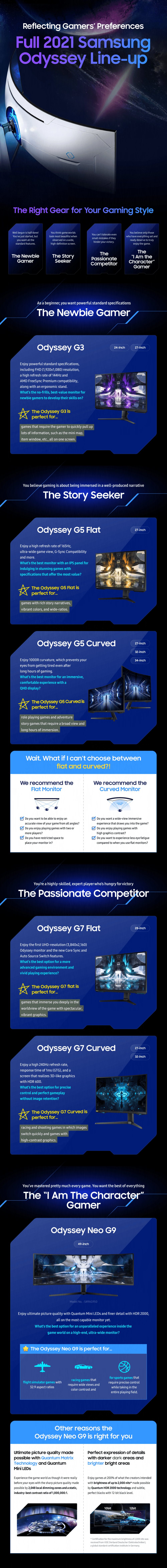 You can view all these monitors and their special features in the infographics below. Samsung has also listed what features to look for in a gaming monitor, depending on your needs and gaming preferences.
