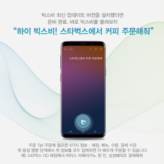 The ordering experience via Bixby has been designed to replicate the in-store ordering experience with a barista. Users can order as if they're talking to a barista in the store and even as for items such as extra whipping cream and more syrup. Bixby will quickly move from order to payment without requiring the user to install any additional apps. They can then just walk to the store and pick up their order.