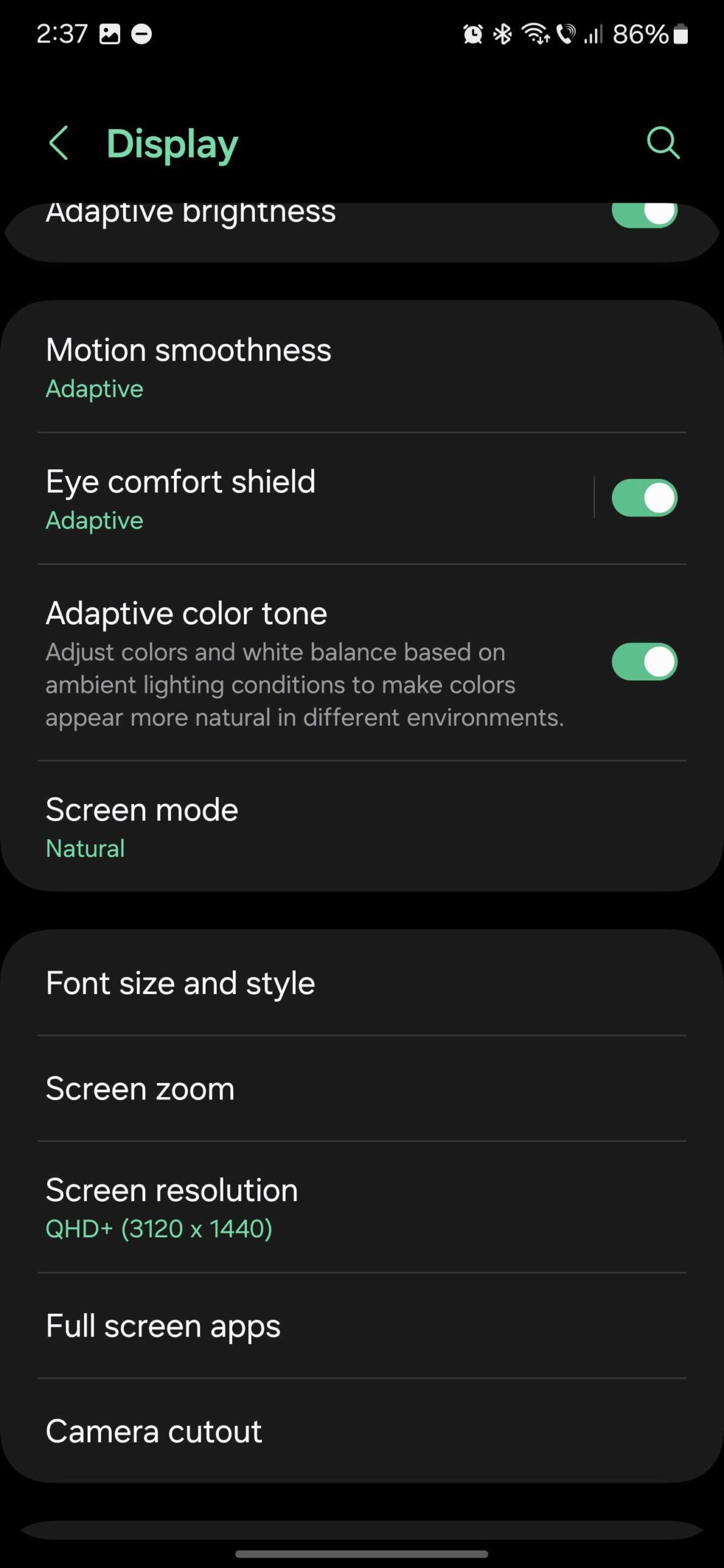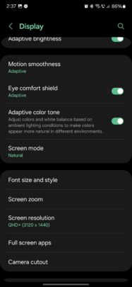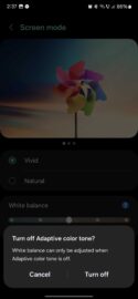 Keep in mind that if you're using Eye Comfort Shield and/or the new Adaptive Color Tone feature, both will have to be turned off while you change your Galaxy S24's display color profile.