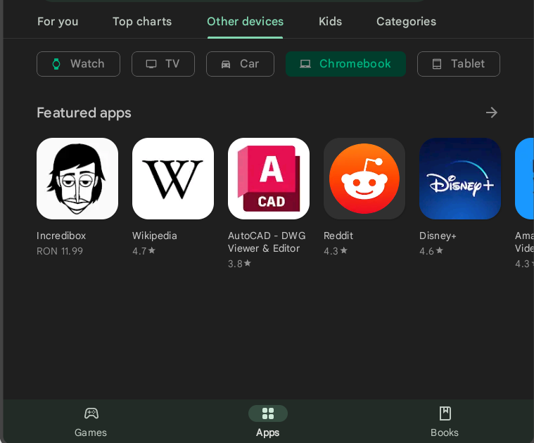 The five new “Other devices” filters are visible to all. You will see them regardless of whether or not you have a watch, Chromebook, tablet, TV, or car that supports Play Store apps. However, if you do own one of these devices, chances are that you'll see an “Optimized for your device” section.