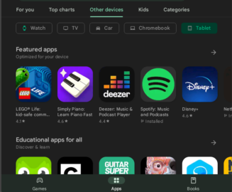 The new categories are Watch (Wear OS), (Android) TV, Car (Automotive), Chromebook (ChromeOS), and Tablet. They all show up when accessing the Apps section of the Play Store, although the “Car” category is not listed when browsing Games.