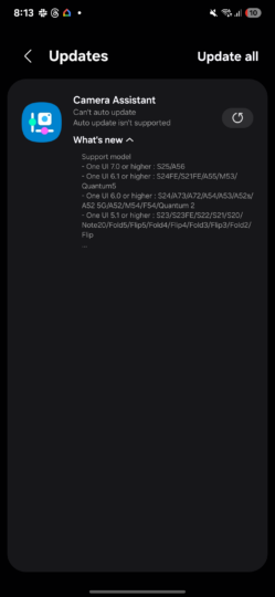 The latest update for Camera Assistant is rolling out for the Galaxy S25 series today. Remember, it's the only lineup that currently runs One UI 7.0 out of the box. The release notes for the update do mention the Galaxy A56 in the supported models, which more or less confirms that the upcoming mid-ranger will also run One UI 7.0 out of the box.
