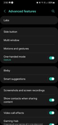 On a final note: Before you can use this clever one-handed mode, you need to enable it. To do this, you'll need to open the Settings app, access “Advanced features,” tap “One-handed mode,” and turn the feature ON.
