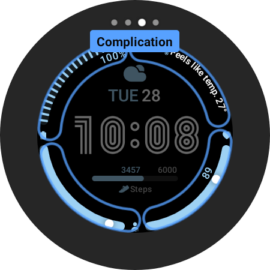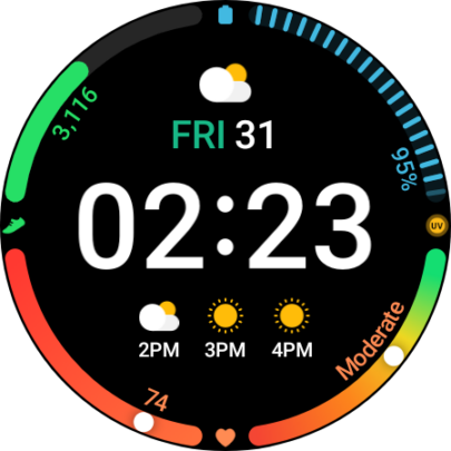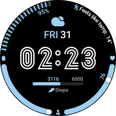 For example, thanks to these many options, most UI elements of the Digital Dashboard watch face can be modified with a different style and color. And complications can be replaced with others, providing other bits of information at a glance.