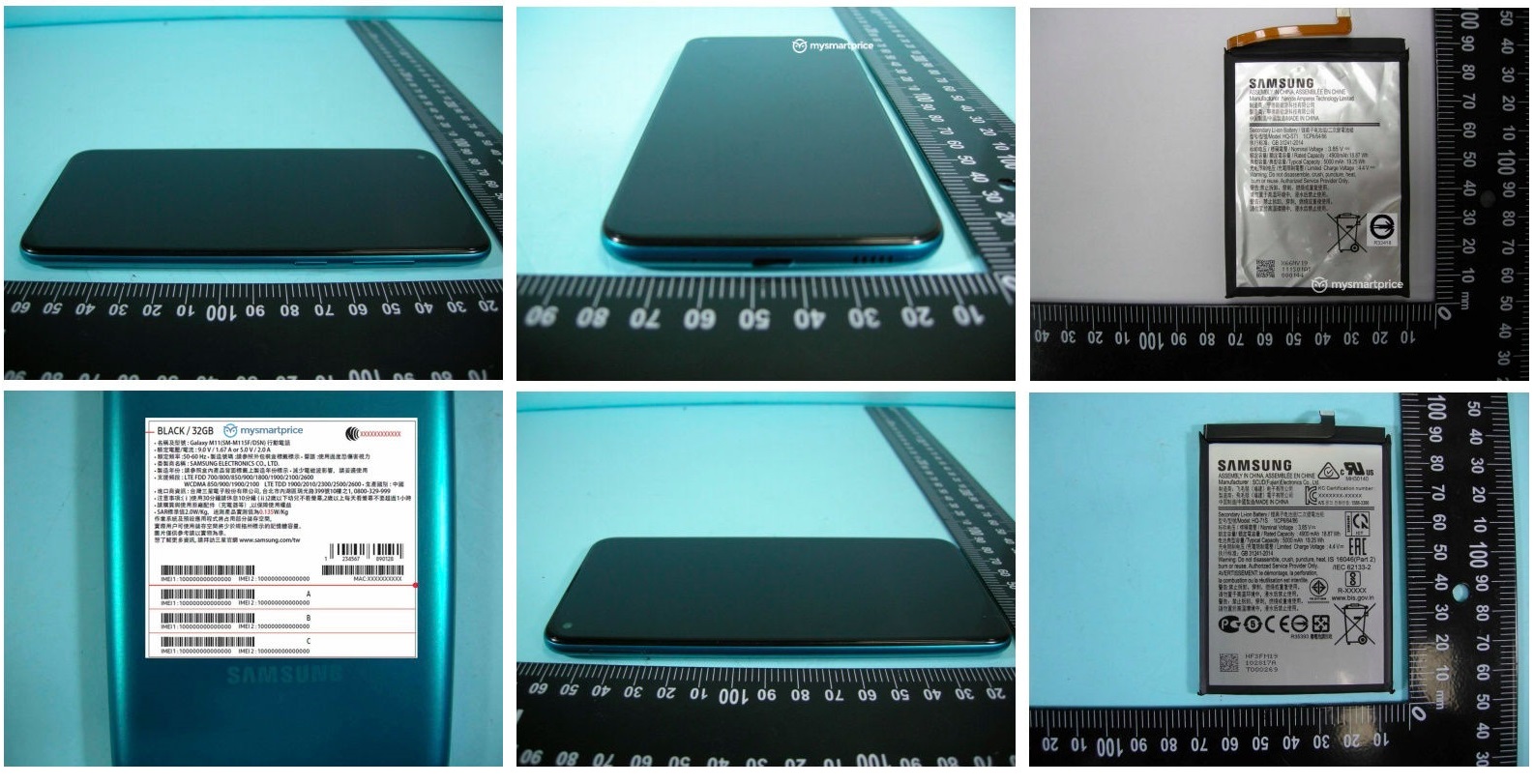 One of the photos pulled from the NCC application for the Galaxy M11 reveals the phone's internal battery. It appears to have a capacity of 4,900-5,000mAh. Another image suggests that the device will ship with a 15W fast charger in the box.