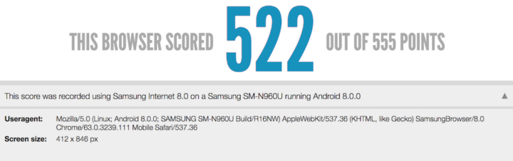 While the Galaxy S8 shipped with Android 7.0 Nought out of the box, the Galaxy Note 8 came with Android 7.1. Even though the browser benchmark shows that the device was tested with Android 8.0 Oreo onboard it's likely that when the Galaxy Note 9 ships in the second half of this year it will be running Android 8.1.