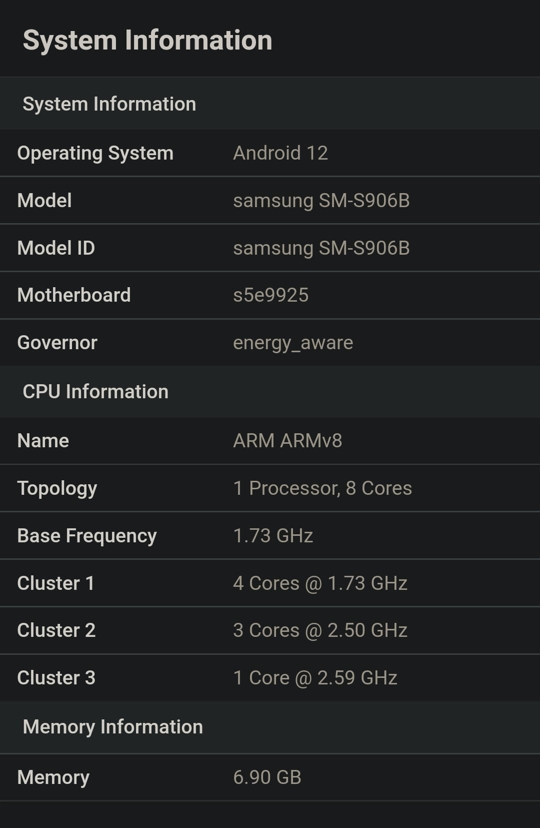 The Galaxy S22+ (with model number SM-S906B) showed up in Geekbench's database earlier today. The smartphone is powered by the S5E9925 (Exynos 2200) chipset and features 8GB of RAM. The processor scored 1,073 points in the single-core CPU test and 3,389 points in the multi-core CPU test. The benchmark scores look extremely unimpressive, but that could be a result of the device being in the power-saving mode.