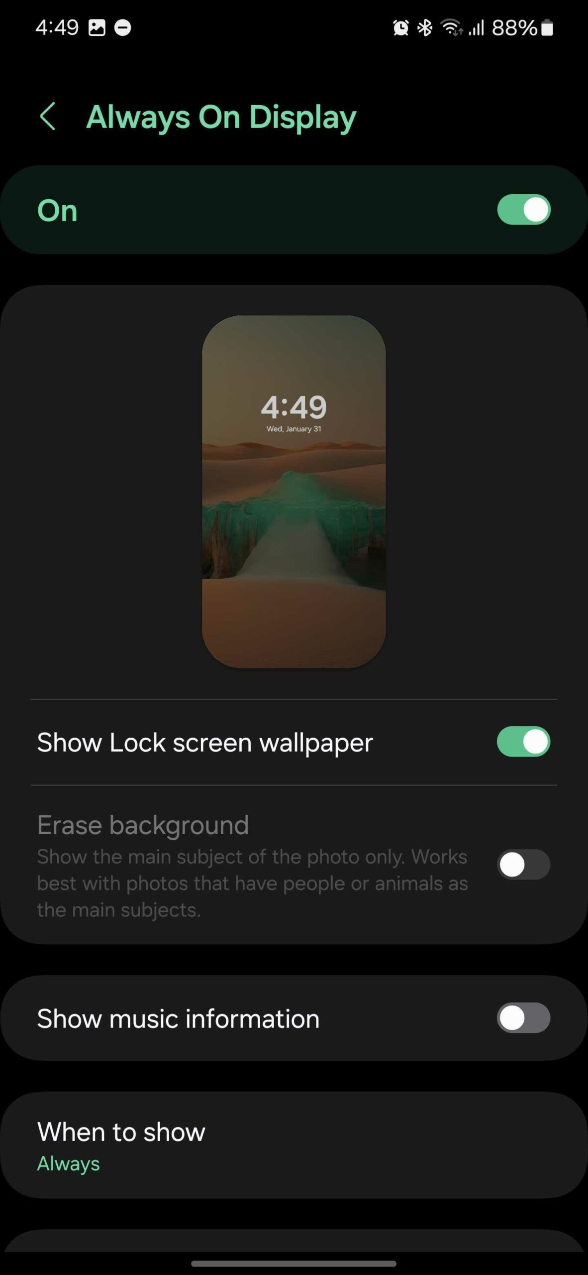 If you don't like the new look, you can always revert to the old AOD style where only the clock and a few other UI elements are shown on a black background on the Always On Display.