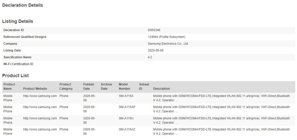 Prior to its quiet addition to Samsung's website, the Galaxy A11 was also certified by the Wi-Fi Alliance roughly four months ago, so there aren't many formalities left before the device can be released to the public. Evidently, since the phone's specs have already been revealed by Samsung a couple of months back, the recent Bluetooth approvals don't reveal anything new about what makes the Galaxy A11 tick.
