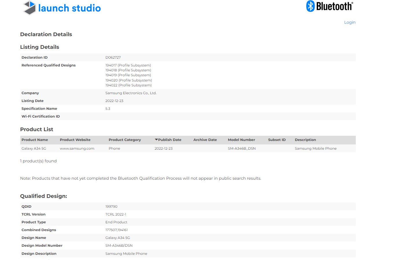 Samsung’s two upcoming Galaxy A-series smartphones—Galaxy A34 5G and Galaxy A54 5G—have been spotted on the Bluetooth SIG website (via Mukul Sharma). The listing of the two devices (SM-A346B and SM-A546B) on the certification platform reveals that they are equipped with Bluetooth 5.3 while hinting that they are now one step closer to launch.