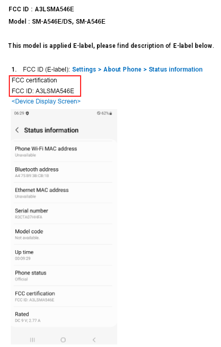 The phone popped up at the FCC carrying model number SM-A546E / SM-A546E/DS, confirming dual-SIM capabilities. As usual, the FCC doesn't go into details concerning most internal hardware, but the documents have revealed a couple of interesting tidbits, including the use of a 25W charger, which seems to reconfirm that the Galaxy A54 5G has 25W charging capabilities for its seemingly larger 5,100mAh battery.