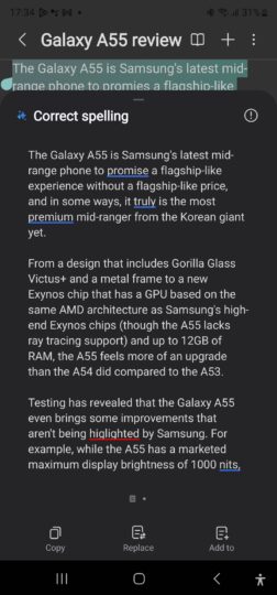 Once you are satisfied with the results, use the buttons at the bottom of the screen to copy the spell-corrected text, replace the existing text with it, or save it as a new page in the same note or a separate new note.