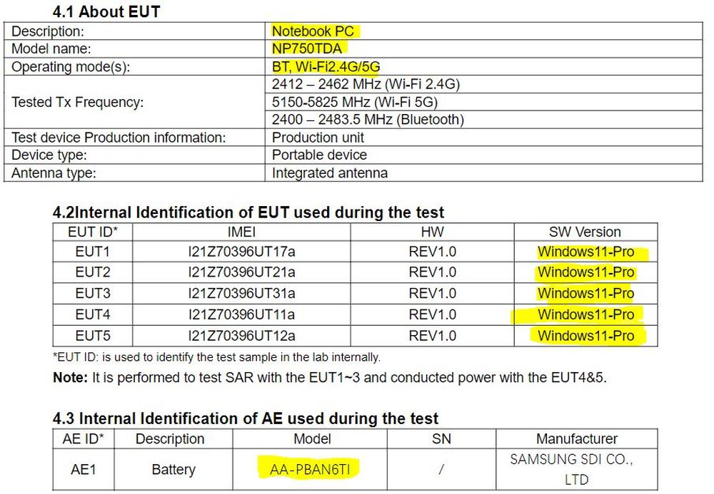 The unannounced laptop has model number NP750, whereas the ongoing Galaxy Book Flex 2 Alpha is known by model number NP730, so there's obviously a connection. The FCC documents also revealed Bluetooth and Wi-Fi 2.4G/5G connectivity, along with a battery that carries model number AA-PBAN6TI. It's not a new model and should have a capacity of around 6,800mAh.