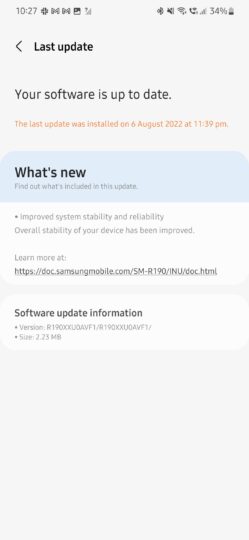 This Galaxy Buds 2 update has been released worldwide, so everyone who owns these wireless earbuds can install the update right away. To install the update, head over to the Galaxy Wearable app and navigate to Earbuds settings » Earbuds software update and then tap on Update.