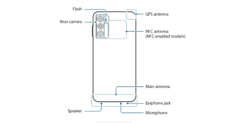 The Galaxy F13 has dual-SIM capabilities and expandable storage, and accoring to schematics found in the online user manual, it features an Infinity-V display and three rear-facing cameras.
