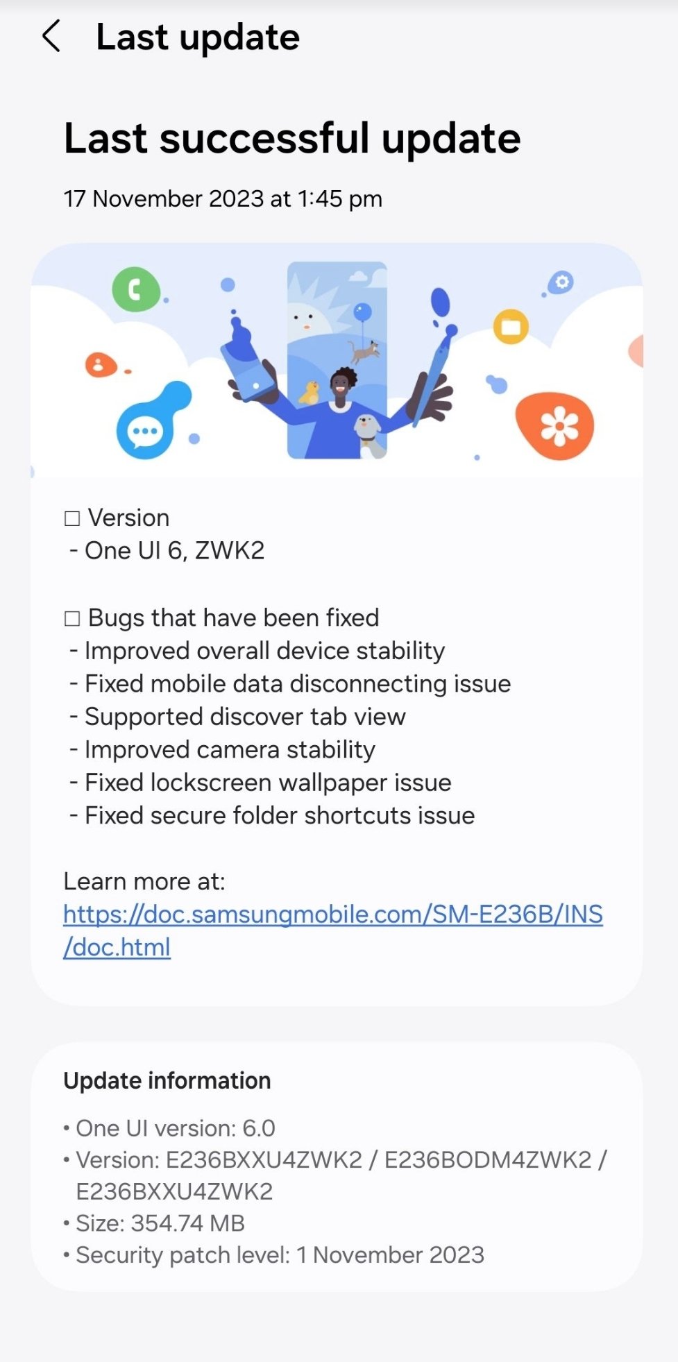 The embedded changelog, which sadly can't always be trusted for beta builds, says that the fourth One UI 6.0 beta for the Galaxy F23 improves device and camera stability while fixing: