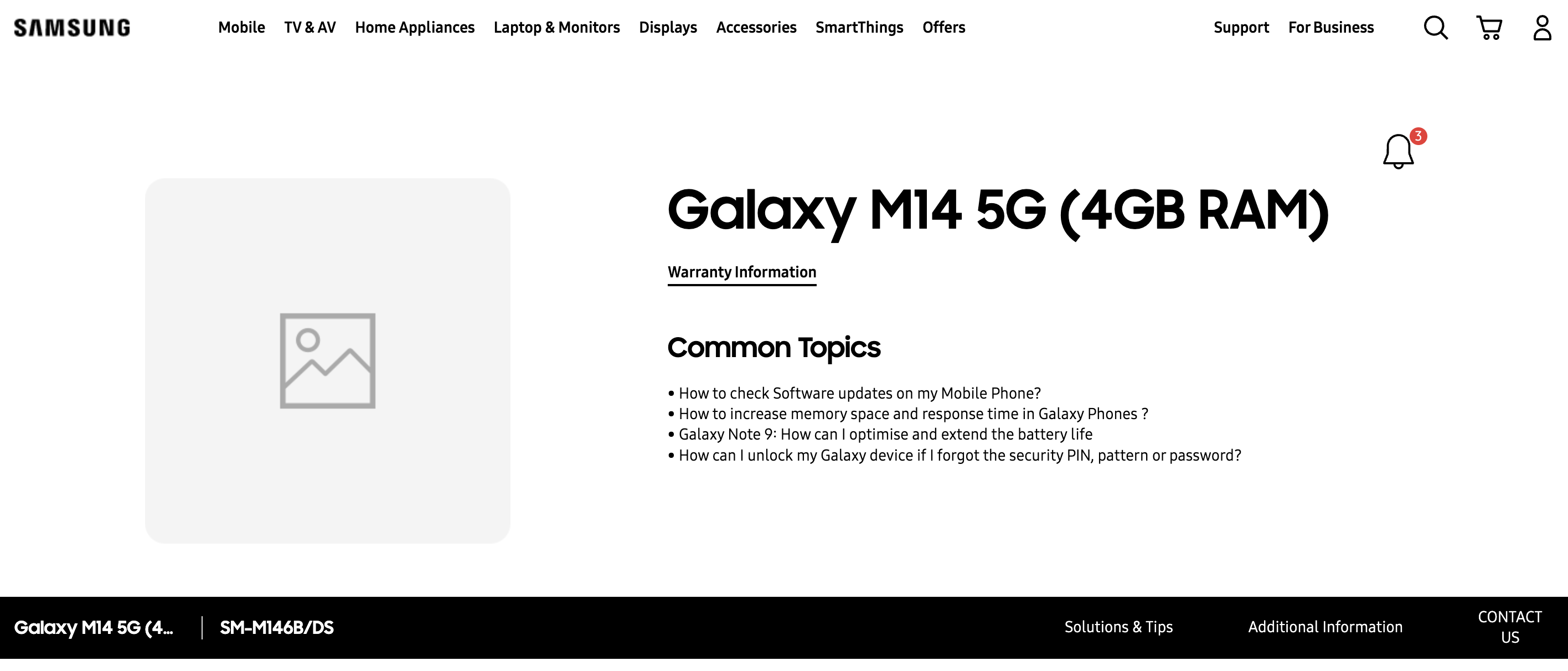 The Galaxy M14 5G's support page has gone live on Samsung India's website. The webpage mentions the phone's name along with its model number SM-M146B/DS. 4GB RAM is also mentioned on the webpage, which means that its 4GB RAM version is almost confirmed for the Indian market. The model number also confirms the presence of a dual-SIM card slot in the phone.