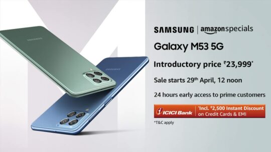 Samsung has priced the 6GB RAM variant of the phone at INR 26,499 (an introductory price of INR 23,999). The 8GB RAM version of the phone is priced at INR 28,499 (an introductory price of INR 25,999). The device is available for purchase via Amazon.in and Samsung.com starting April 29, 2022, at 12PM.