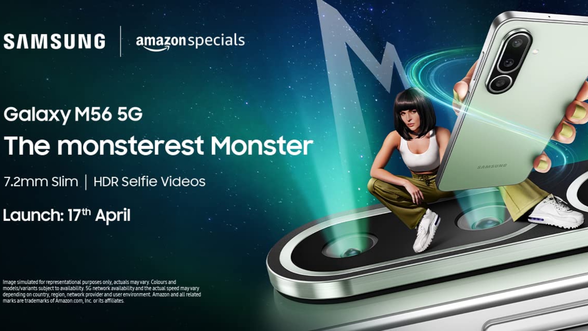 The Galaxy M56 will be launched in India on April 17 and will be sold exclusively through Amazon India. On a dedicated webpage on Amazon, Samsung has revealed that the Galaxy M56's design along with some of its features. At just 7.2mm, the phone is thinner than its predecessor, the Galaxy M55 despite having the same battery size (5,000mAh). The new phone weighs the same (180g) as the Galaxy M55.