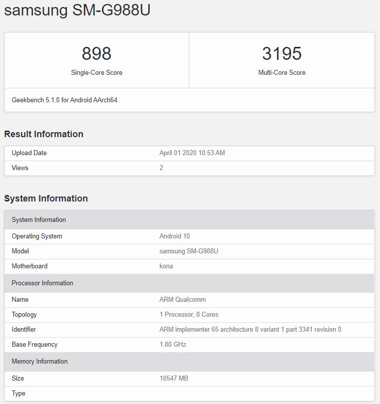 Other details revealed by the benchmark include 8GB of RAM, which is a bit odd given that the Galaxy S20 5G has 12GB of RAM as standard. But keep in mind that this may be an early prototype model, so certain specs like RAM could change by the time the phone will be ready for the market. There's always the possibility that this benchmark listing may have been faked because it's not very difficult to do that in the first place.