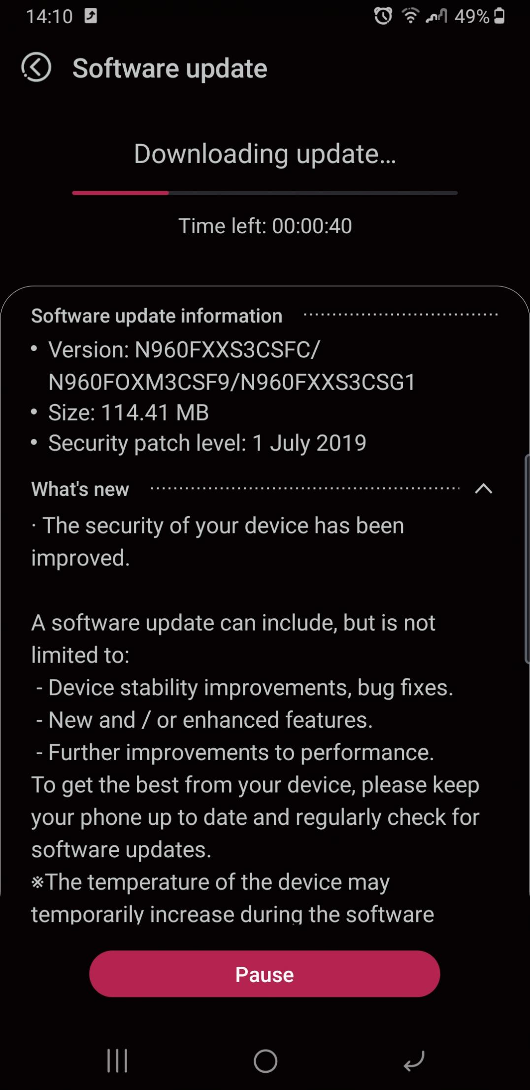 At this time, we aren't aware of what the new Galaxy Note 9 update includes other than the latest security enhancements. The previous update brought two new camera features: a dedicated Night mode and a QR code reader. Night mode hasn't worked perfectly for all Galaxy Note 9 (and Galaxy S9) users, and Samsung has hopefully managed to fix that with the July update. As for the July 2019 security patch, it fixes ten critical vulnerabilities that were discovered in the Android OS and plugs 13 security holes that only affect Samsung's software.