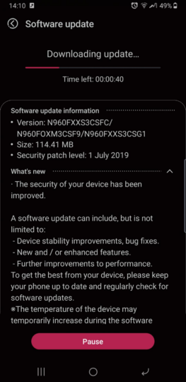 If you have a Galaxy Note 9, you can download the update over the air by opening the Settings app on your phone, navigating to Software update, and then tapping the Download and install option. Firmware for the new update are available in our firmware section and can be used to manually upgrade your Note 9 using a Windows PC. After you've installed the update, don't forget to leave a comment if you discover something new or different on your device.