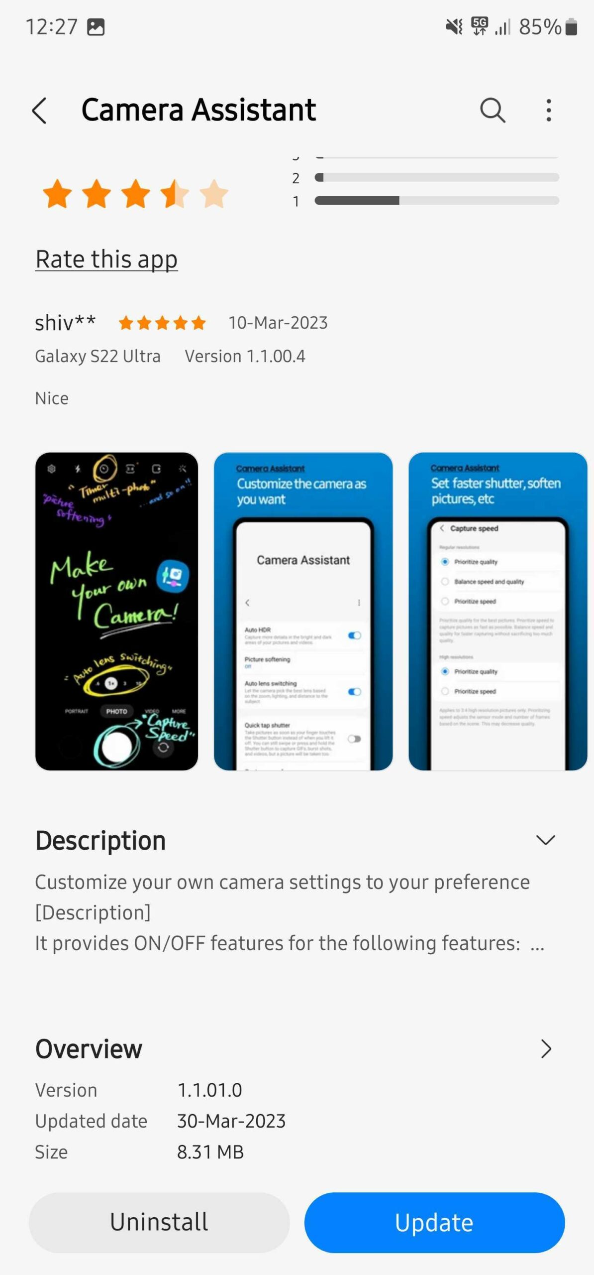 You can download the latest version of the Camera Assistant app only from the Galaxy Store on your compatible Galaxy smartphone.