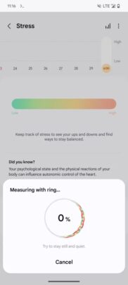 The Galaxy Ring can track your heart rate, stress, sleep, and snoring habits. These features were revealed by a report from Android Authority. As you can see in the images below, when paired with a Galaxy Ring, the Samsung Health app can track your health and display live results. The app also displays a new circular animation when tracking your stress.