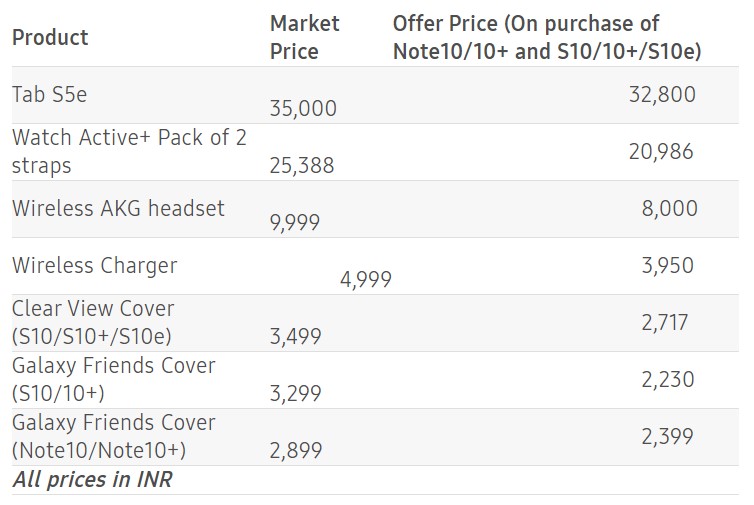 Samsung India has come up with one such new promotion for its 2019 flagship smartphones. Under the new offer, the company is giving discounts up to 32% on a wide range of Samsung products to those who purchase a Galaxy S10 or a Note 10 model. The list of discounted products includes the Galaxy Tab S5e, AKG Y500 headset, wireless charger, Galaxy Watch Active, Galaxy Friends Cover, and Clear View Cover.