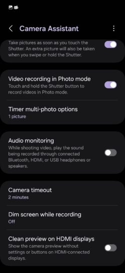 Disabling auto lens switching is not possible on the S21 FE, and neither is the option to disable automatic HDR image capture. Samsung could add these features with new updates to the Camera Assistant app, and we will be sure to let you know if (and when) that happens.